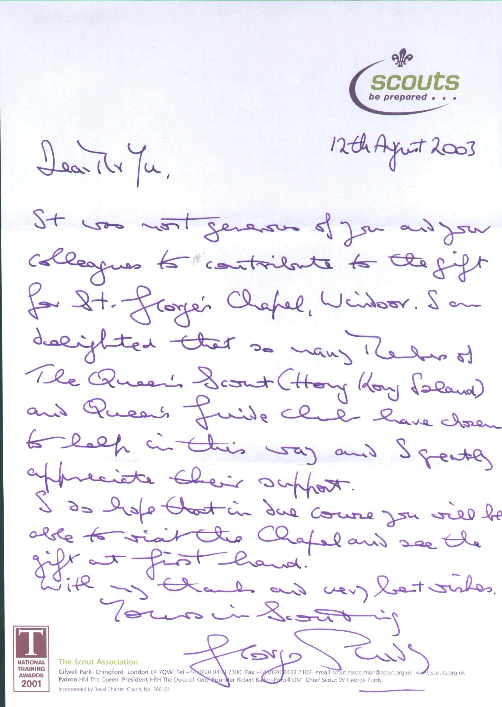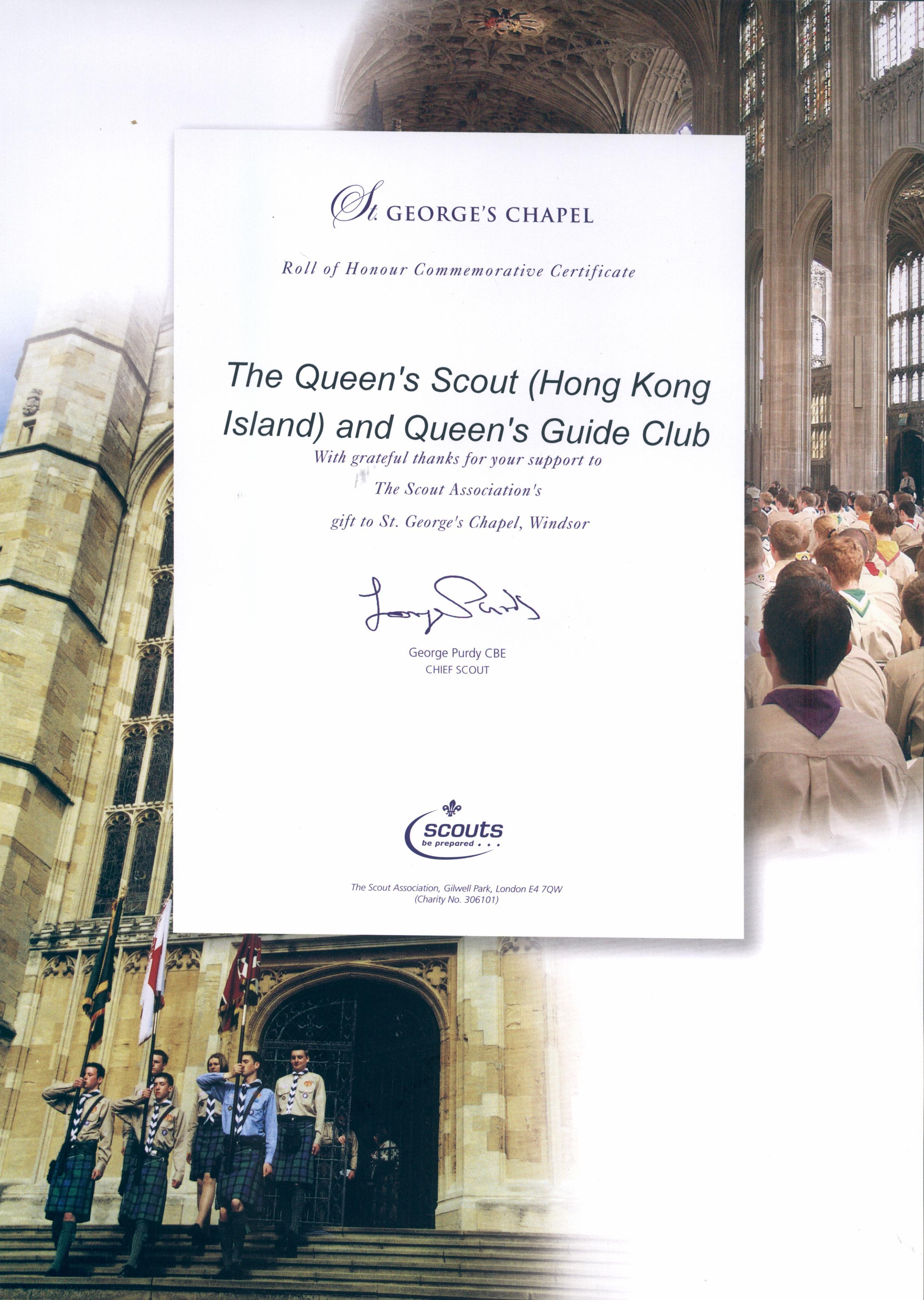 明年適逢是溫莎堡聖佐治教堂舉行榮譽童軍頒獎儀式七十週年紀念,預計屆時將同時舉行紀念品揭幕儀式。