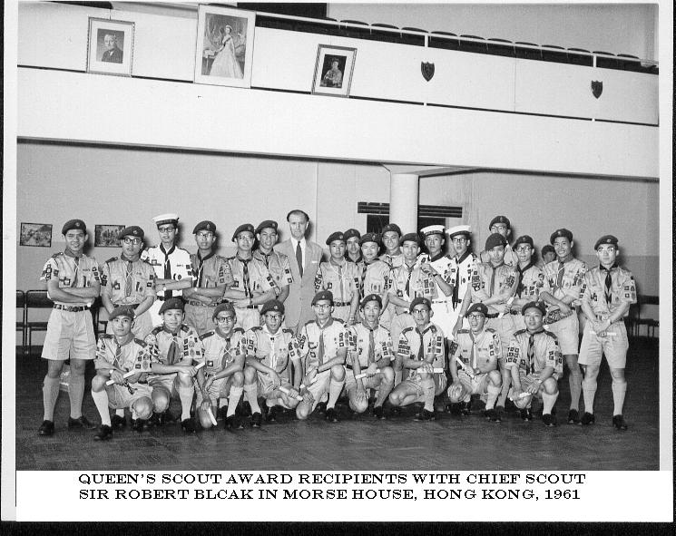 美國加州的麥岳錕寄來一張他在1961年領取榮譽童軍獎章證書時的照片,頒獎的是當時的總領袖柏立基爵士,合照的除上述會友外,還有現任香港總監鮑紹雄先 生,請試試找出他們。答案將於下期《會訊》揭曉。 |